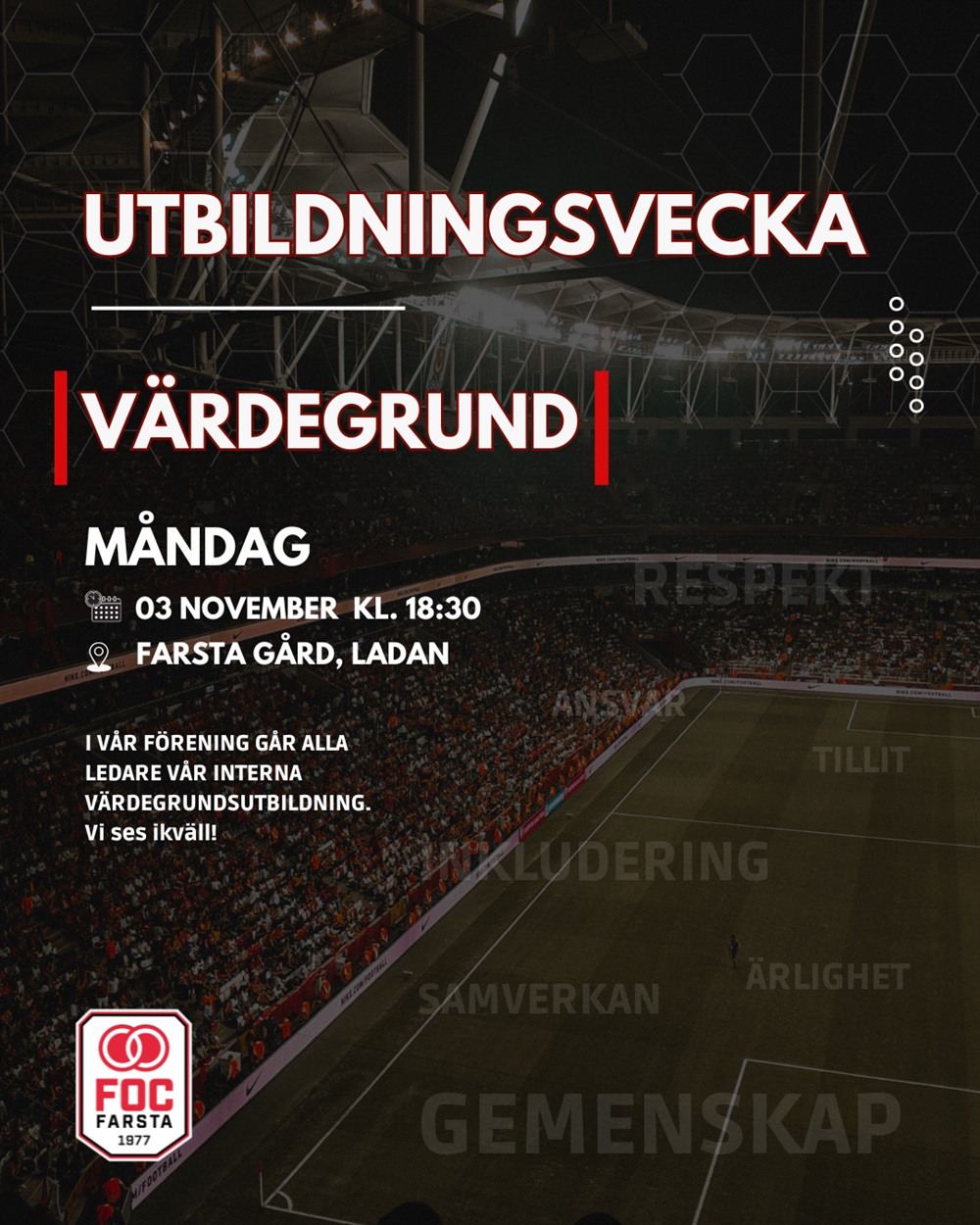 Idag startar vi föreningens årliga utbildningsvecka. Vi ställer in alla träningar och vi samlas för att tillsammans göra ännu bättre verksamhet och få en ännu bättre föreningen. Tillsammans!